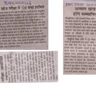 This test for the students of 9th & 10th standard of all schools under Chaukhutia & Syalde Block, District Almora, Uttarakhand was conducted on 25.12.2008 at 2 examination centres namely Saraswati Vidya Mandir Chaukhutia and GIC Syalde. Total 128 students participated in the written test.