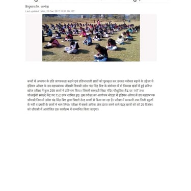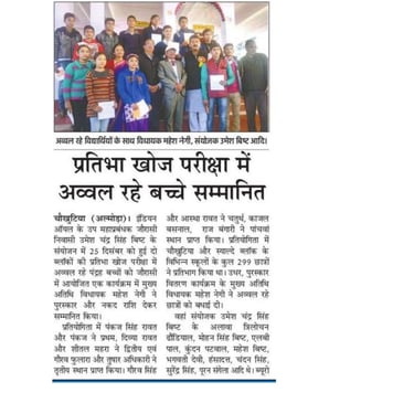 The 11th test for the students of 9th & 10th standard of 47 Govt. schools & 5 Pvt. Schools under Chaukhutia & Syalde Block, District Almora, Uttarakhand was conducted on 25.12.2017 at 2 examination centres namely Saraswati Vidya Mandir Chaukhutia and GIC Syalde. Total 299 students participated in the written test.