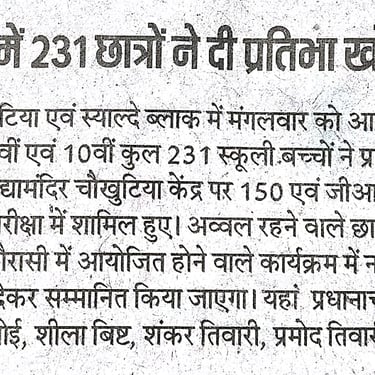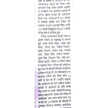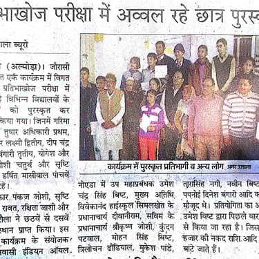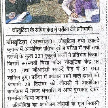 The 12th test for the students of 9th & 10th standard of 52 schools (47 Govt Schools & 7 Private schools) of Chaukhutia & Syalde Block, District Almora, Uttarakhand was conducted on 25.12.2018 at 2 examination centres namely Saraswati Vidya Mandir Chaukhutia and GIC Syalde. Total 231 students participated in the written test.