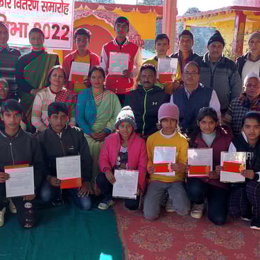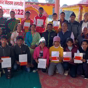 Based on the performance of students in the written exam, top 10 students from 50 Govt. schools and top 5 students from 7 Private schools were selected and presented with certificates and cash prizes in a prize distribution function organized on 28.12.2022 at Jaurasi, my hometown, a place at the centre of these two blocks Chaukhutia & Syalde.
