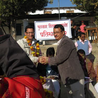 Based on the performance of students in the written exam, top 10 students were selected and presented with certificates and cash prizes in a prize distribution function organized on 28.12.2009 at Jaurasi, my hometown, a place at the centre of these two blocks Chaukhutia & Syalde.