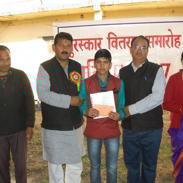 Based on the performance of students in the written exam, top 10 students from Govt. schools and top 5 students from Pvt. Schools were selected and presented with certificates and cash prizes in a prize distribution function organized at Jaurasi, my hometown on 29.12.2017.