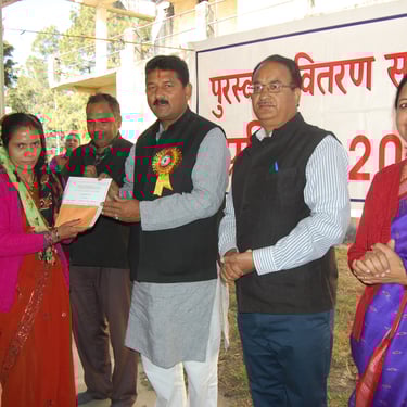 Chief guest of the function was Sh. Mahesh Negi, MLA Dwarahat Assembly. The certificates & cash prizes to all the toppers were distributed by the Chief Guest. In his address, the Chief Guest congratulated the students, their parents and teachers for their remarkable achievement. He also appreciated the efforts being put by organizers Shri Umesh CS Bisht and Sheela Bisht of this initiative and continuing it for last 11 years and that too while living in NCR away from this area.